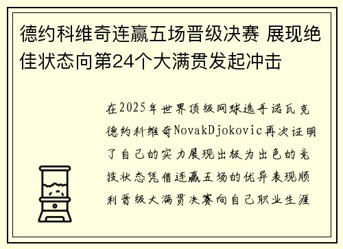 德约科维奇凭借出色的表现力克对手,成功挺进温网四强,创造了个人历史的新高。这不仅仅是一次简单的比赛胜利,更是他网球生涯中又一个辉煌的里程碑。通过这次比赛,德约科维奇再一次展示了他作为网球巨星的卓越技术、坚韧的心理素质、过硬的体能基础以及无与伦比的比赛智慧。本文将从四个方面详细解析德约科维奇如何力克对手挺进四强并创造个人历史新高,这四个方面分别是:技术的精湛与完美发挥、心理素质的成熟与稳定、体能状况...