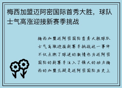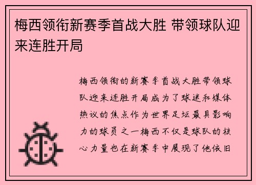文章摘要:新赛季的法甲联赛,一场精彩的足球盛宴再次席卷而来。以姆巴佩为核心的大巴黎,在经历了上一赛季的起伏后,强势复苏,豪取连胜,成为了本赛季焦点中的焦点。作为球队的领军人物,姆巴佩不仅带领法国队在国际赛场上展现强劲的实力,同时也在俱乐部比赛中展现出出色的个人表现和对球队的巨大贡献。本篇文章将从四个方面详细探讨姆巴佩如何领衔法国队强势复苏,并帮助巴黎圣日耳曼豪取连胜,点燃了球迷和媒体的热烈讨论。文...